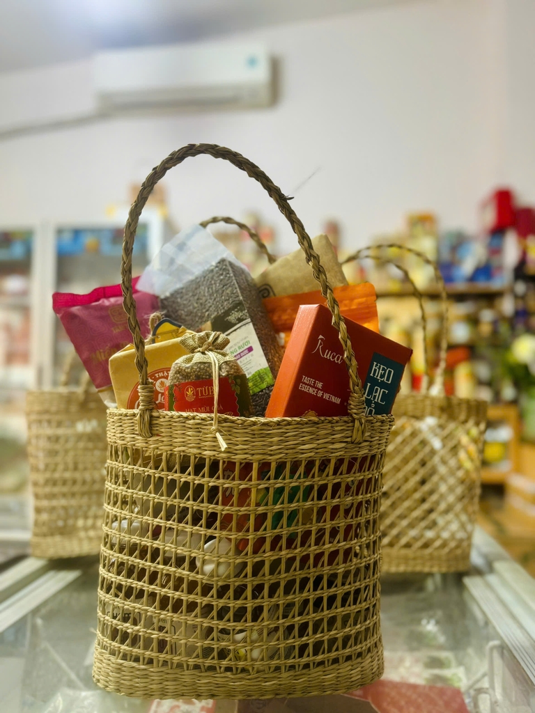 Vẻ đẹp mộc mạc mà đẳng cấp: Chúng tôi sử dụng giỏ mây tre đan tự nhiên thay cho túi nilon hay hộp giấy công nghiệp, không chỉ bảo vệ môi trường mà còn tôn vinh nét đẹp văn hóa thủ công mỹ nghệ Việt Nam.
